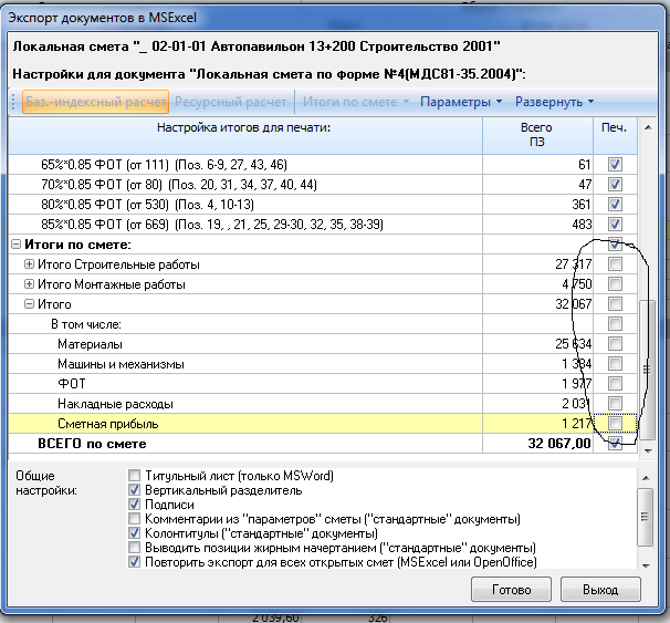 и тут косяк - я настраиваю итог по разделу таки образом - чтобы в итог раздела попали только прямые затраты. Однако в первой смете все нормально, только прямые затраты показывает. В остальных и накладные и сметная прибыль показываются. опять в эксель убираю, а если разделов 10 в смете? и смет пяток? и эксперт за спиной - с вопросом "ну когда..."?