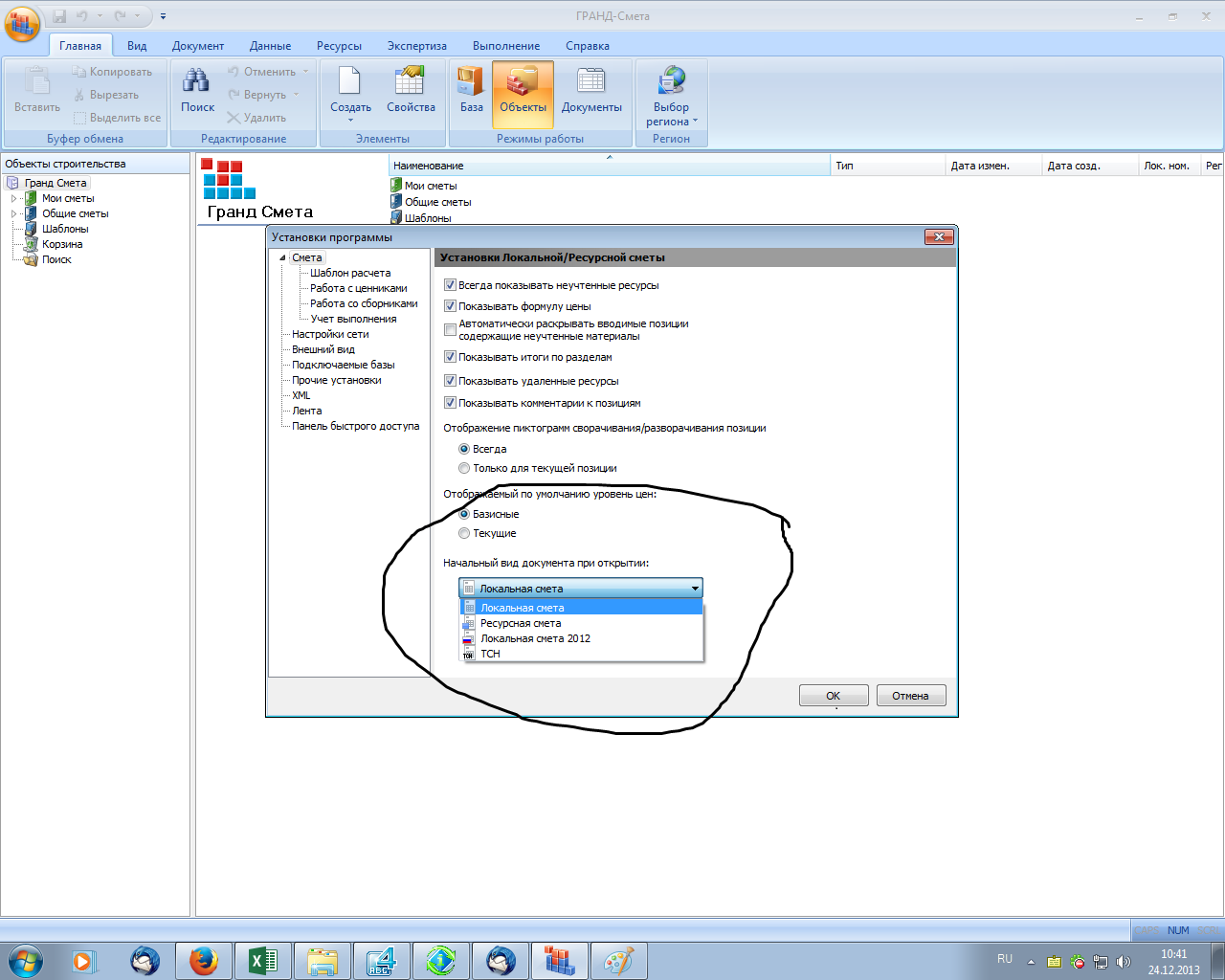 второй вопрос-где мне поставить галочку так чтобы при открытии сметы в программе Гранд смета-сметка открывалась в ресурсном методе (у меня открывается сразу в баз-индексном методе)