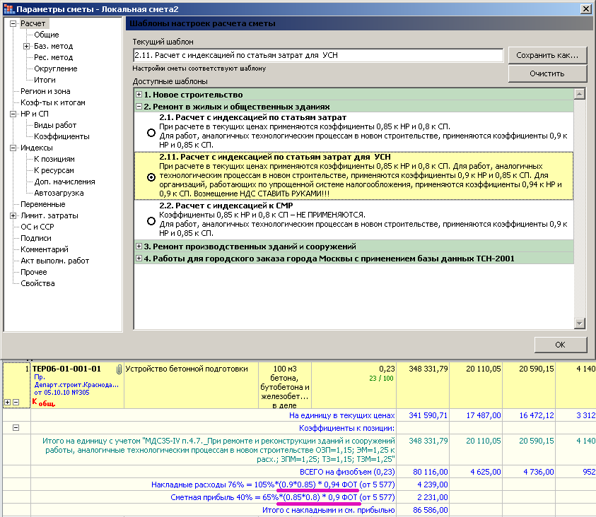 И если после этого сохранить полученный набор параметров сметы в виде ещё одного шаблона, то впоследствии сможете автоматически смету таким образом настраивать, как указано в сообщении # 3468.