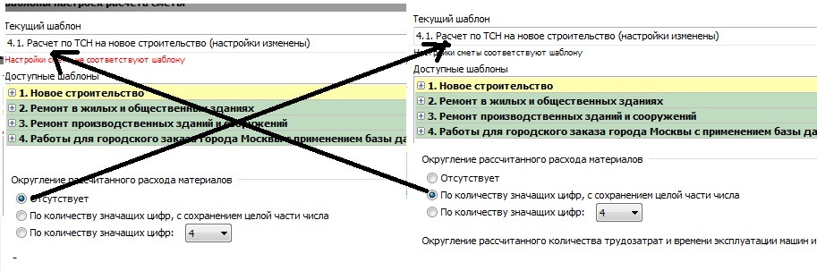Starichok_kz, а причём тут точка и база ФЕР ? Про точку и базу ФЕР я всё понял давно, я буду пользоваться точкой, переставлять её (коль она у вас по-умолчанию почему-то стоит с округлениями, но фиг с ней) , я не пользуюсь шаблонами при сметах в ФЕР,   вопрос в том что у базы ТСН Москва  есть два шаблона - "ремонтные работы" и "строительные работы" - вот в этих двух шаблонах чтоб настройки соответствовали шаблону требуется использовать округления.   Надо бы поменять шаблон у ТСН чтоб  шаблон не говорил что настройки изменены если я не стану округлять ресурсы. Смотрите скрин !