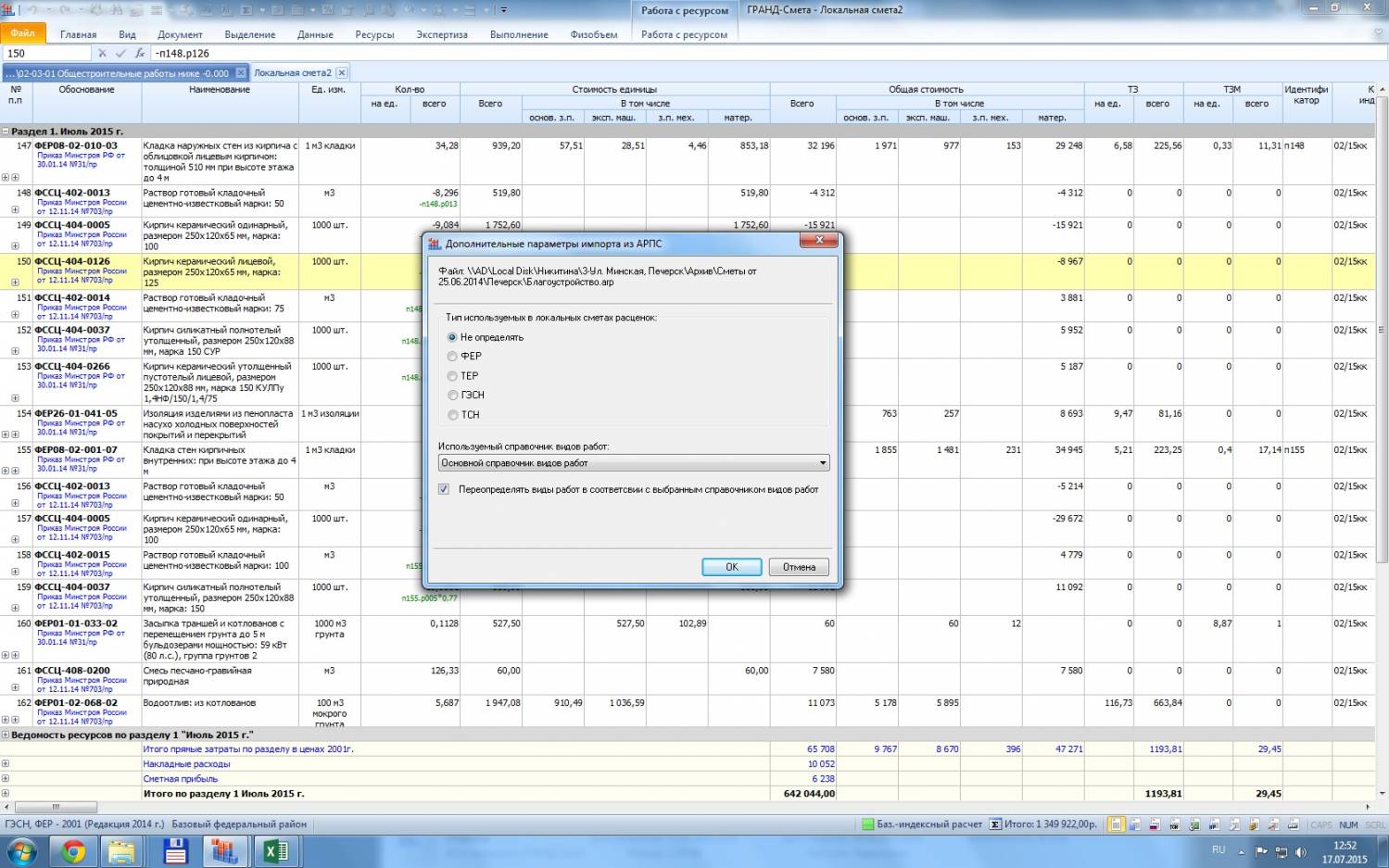 veronika-2, Общестрой около 800 позиций, плюс все "потроха".... ручками ... Почему раньше автоматом пересчитывало ?, ну да где материалы выносились за расценку, ручками рихтовали...