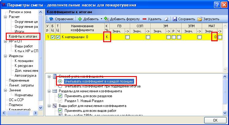 Antistress, коэффициенты можно забить в справочники и добавлять их уже оттуда, чтоб каждый раз заново не набивать. Открываете "Справочники" - выбираете "Коэффициенты к итогам"- нажимаете "Добавить"- вбиваете коэффициент - сохраняете, а потом просто перетаскиваете нужный коэффициент в расценку