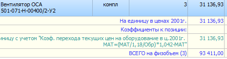 Создала в параметрах сметы коэффициент для перевода материалов/оборудования в цены 2001г.,