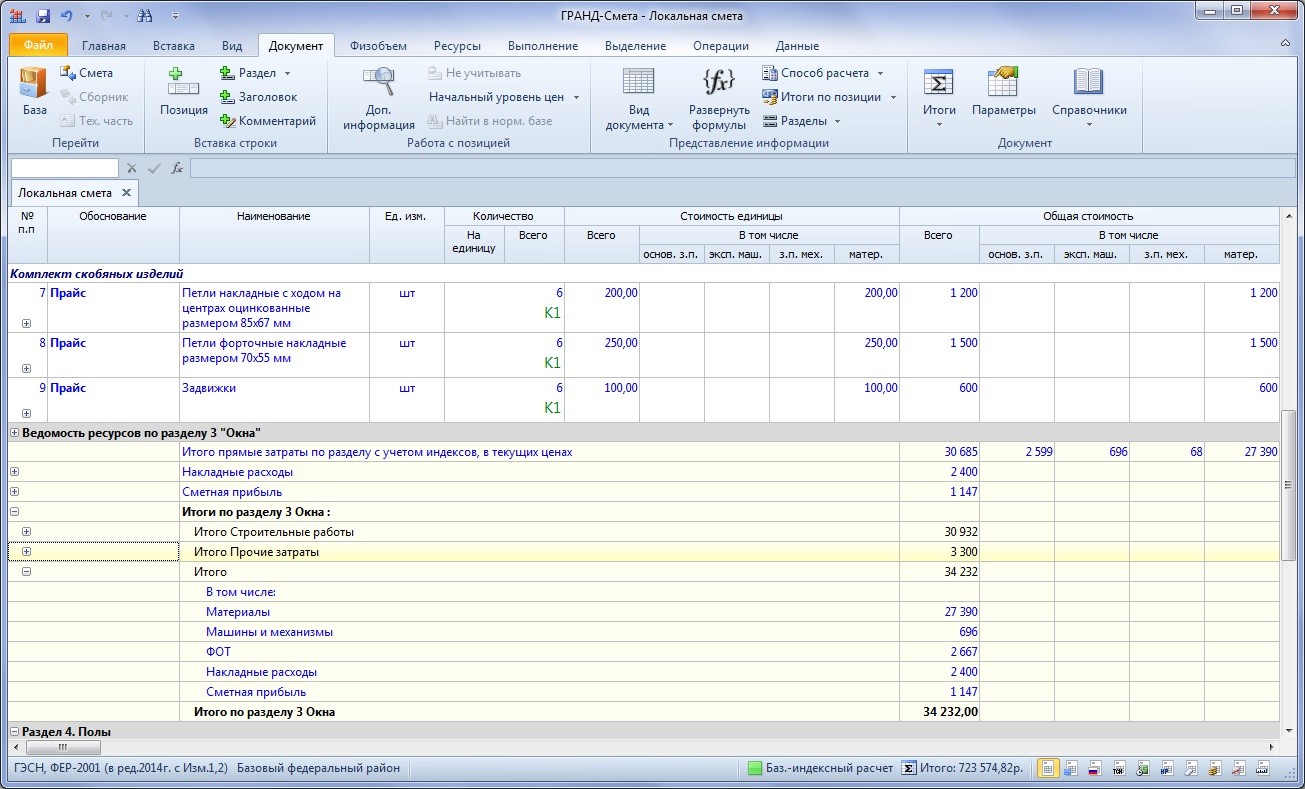 Добавлено (09.08.2016, 16:34) --------------------------------------------- hahatushka222, если вы в итогах на все материалы применяете индекс = 6,418, то при вводе стоимости материалов в позициях не повторяйте данные из сметы по ГЭСН, а делите на этот индекс.
