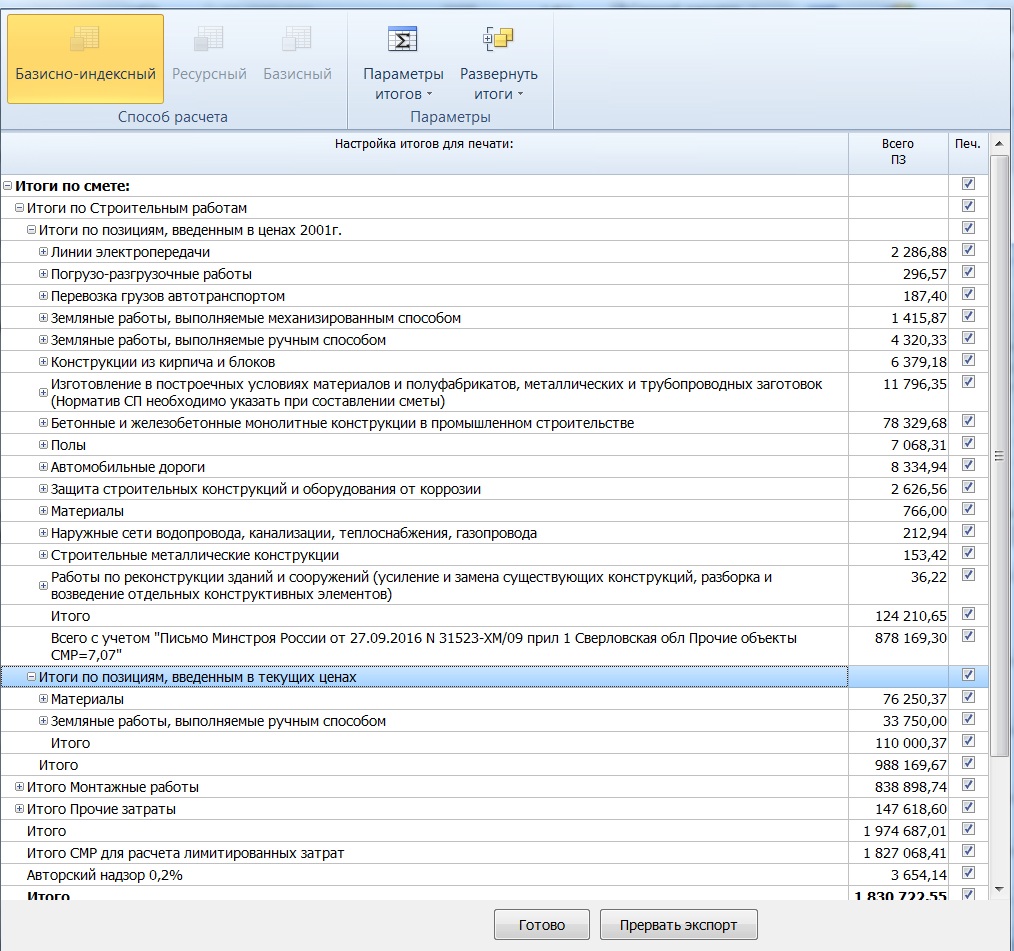 Вот так коэффициенты выводятся и в базовых ценах, и с учетом индексов...и по каждому разделу.
