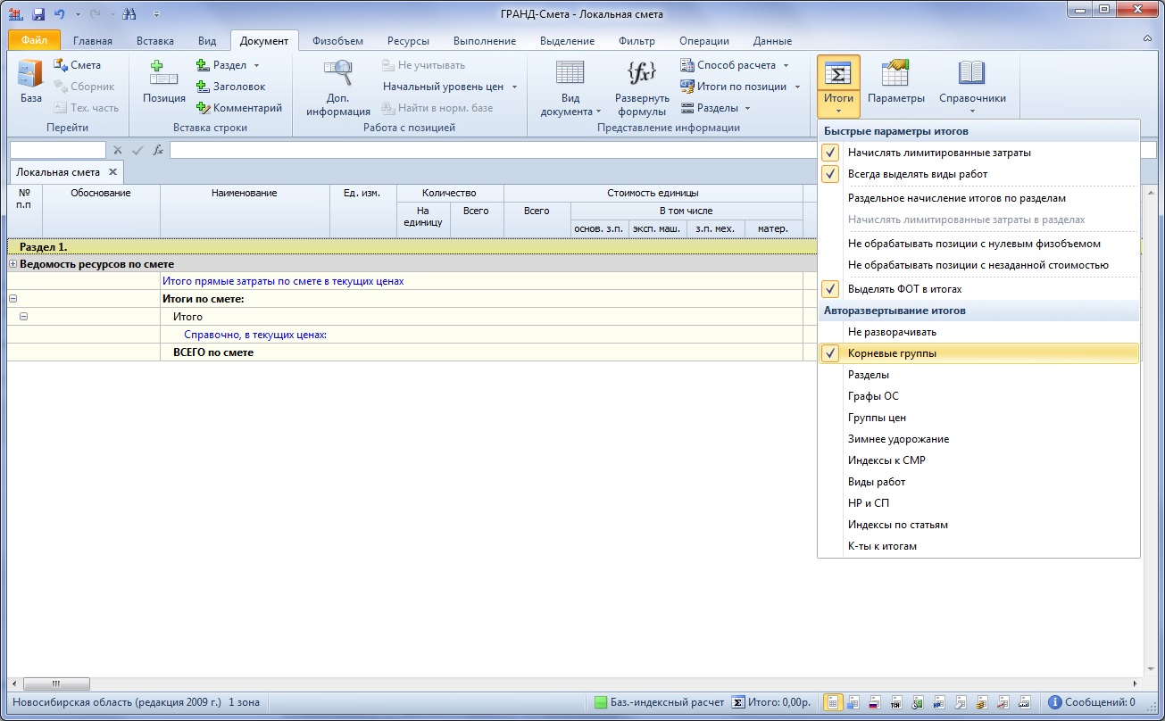 раскрываем "плюсик" Итого прямые затраты по смете с учетом коэффициентов к итогам