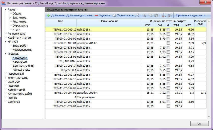 Необходимо откорректировать смету (заменить расценку). Смету мне предоставили. Она проиндексирована по статьям затрат. Индексы загружены автоматически (май 2018г)