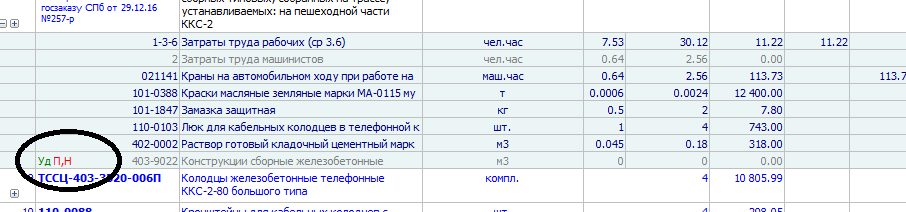 там зелененьким буквы Уд стоят. на скрине он проектный, неучтенный, но там в позициях есть и учтенные Уд. у которых букв П и Н нет...