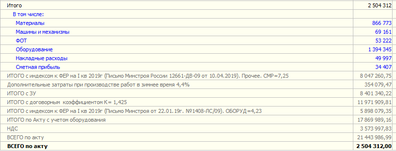 ВСЕГО по акту