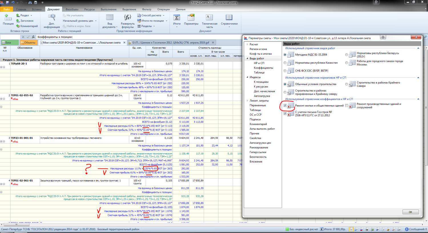 Есть смета, в ней начисляю на расценки коэффициенты к НР и СП тыкая по галочке справочника "Ремонт жилых и общественных зданий" Начисляются кэфы 0,9 к НР и 0,85 к СП и все вроде бы хорошо, но не начисляется кэф 0,9 к НР лишь в одной расценке ТЕР23-01-001-01. Прикладываю скриншоты, может чего не так делаю, как быть ?