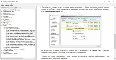3. Там же, работая со списком актов в окне с параметрами сметы, выделить нужные акты и выполнить операцию объединения актов:
