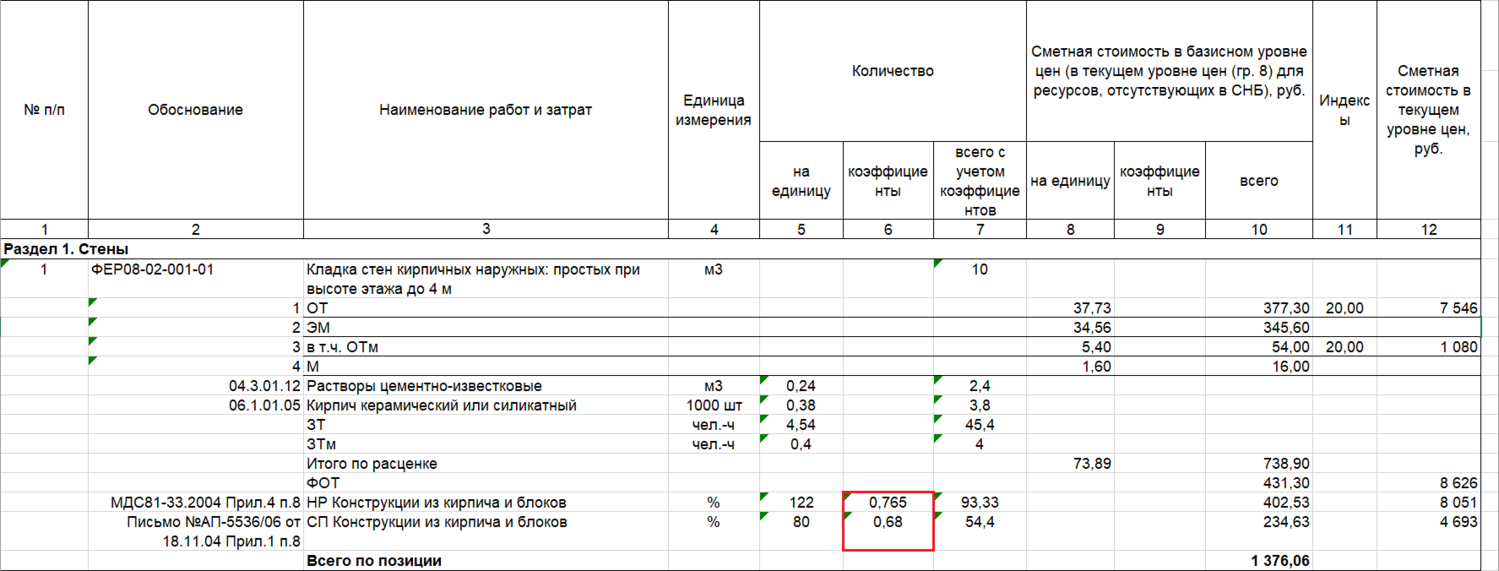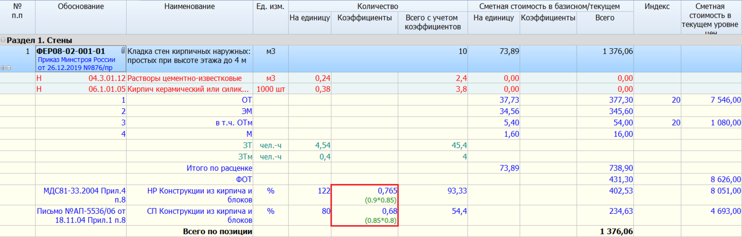Использую формулу компенсации НДС при УСН для новой методике: (БМ.МАТ+(БМ.ЭМ-БМ.ЗПМ)+БМ.НР*0,172+БМ.СП*0,15)*0,2*если(БИМ;7,31;1)+БМ.ОБ*0,2*если(БИМ;4.82;1) Вопрос, как модернизировать данную формулу если у меня имеется индекс на ПНР ? Ранее классическую формулу (МАТ+(ЭМ-ЗПМ)+НР*0,1712+СП*0,15)*0,2*7.31+О*0.2 я превращал в две : (РАЗДЕЛ1.МАТ+(РАЗДЕЛ1.ЭМ-РАЗДЕЛ1.ЗПМ)+РАЗДЕЛ1.НР*0,1712+РАЗДЕЛ1.СП*0,15)*0,2*7.31+О*0.2 и (РАЗДЕЛ2.НР*0,1712+РАЗДЕЛ2.СП*0,15)*0,2*16,38 и ставил раздельное начисление итогов по разделу. В новой формуле так не получается.