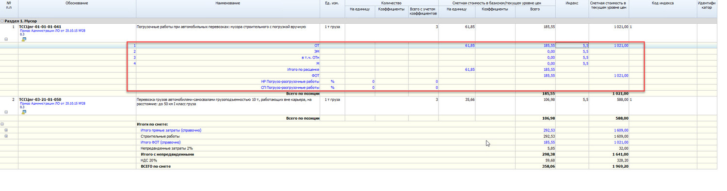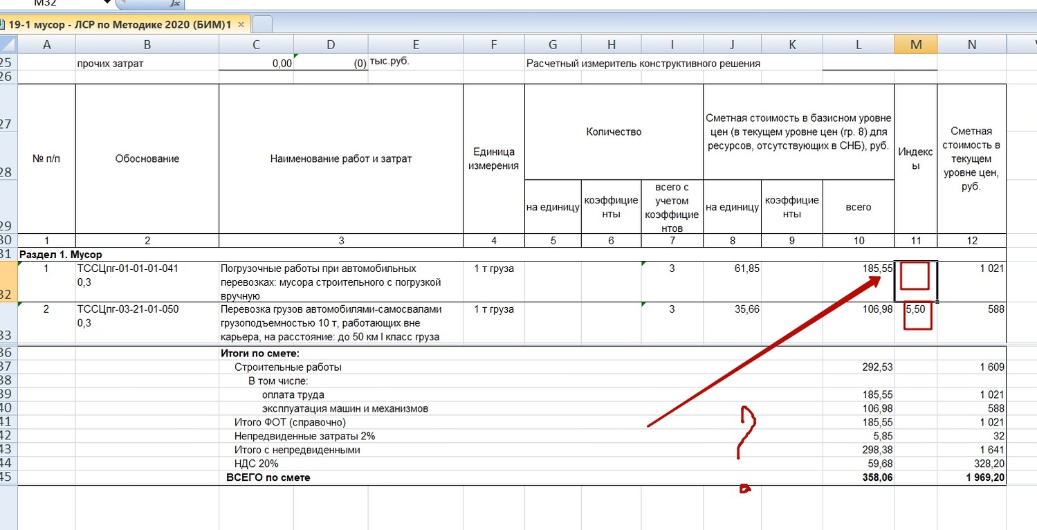 Здравствуйте! Подскажите, почему по новой методике когда вывожу в эксель смету, не прописывается индекс на погрузочные работы? приложил смету в гранде