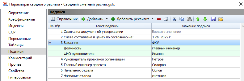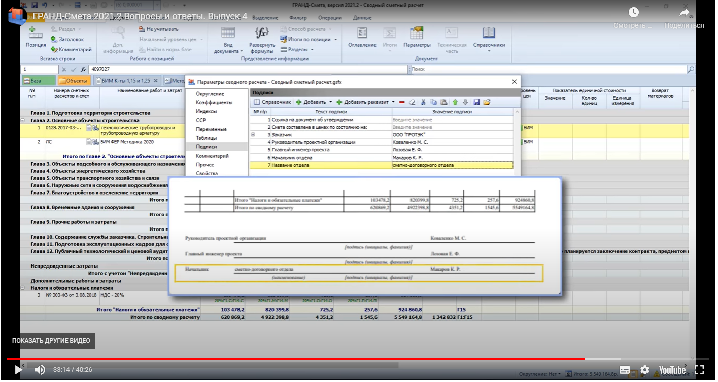 Версия 2021.2.5. При составлении ССР ("Параметры" вкладка "Подписи"), руководствуясь рекомендациями из обучающего видеоролика «ГРАНД-Смета», версия 2021.2 Вопросы и ответы. Выпуск 4, не получается добиться результата соответствия подписей, указанных в прил. №6 Методики 421/пр, в частности "Начальник сметного отдела" и "Заказчик". Та же проблема при составлении ОСР в части подписи "Начальник сметного отдела".