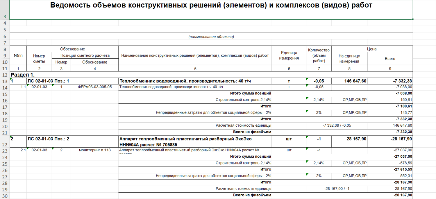 И почему строительный контроль и непредвиденные из гранд-файла в эксель не выводятся ? прикрепляю