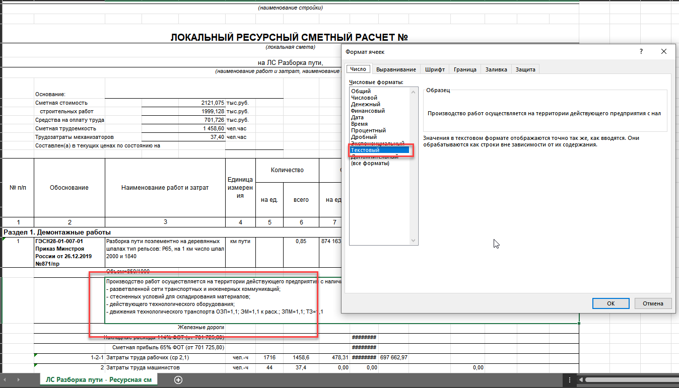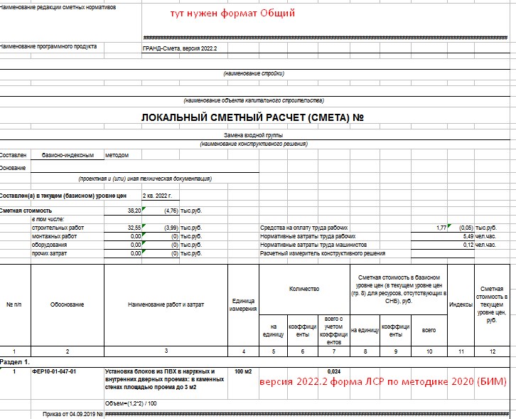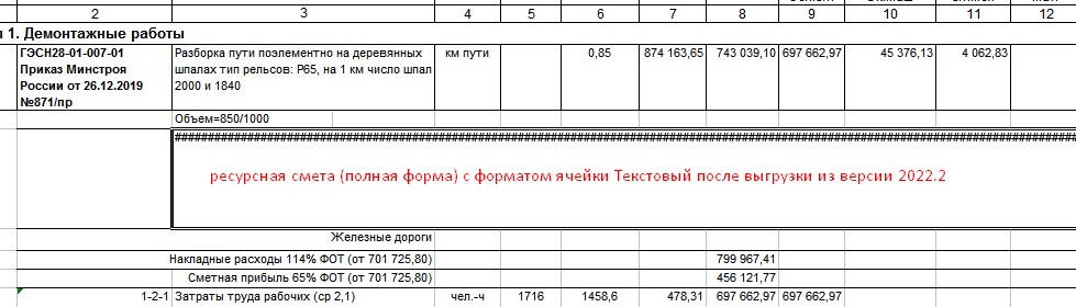 После изменения формата на "Общий" в шаблонах сметы (ProgramData\Grand\GrandSmeta 12\Client\ExpTemplates\1.Локальные сметы) стали выгружаться нормально. При этом в версии 2021.2 выгружается также нормально, однако там форма выглядит иначе.