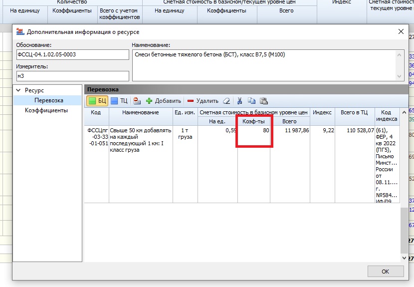 просто реплика. Если есть доп.транмпорт на бетон, то почему его нет на другие ресурсы по расценке. В данном примере это вода и пленка... ? Всегда был доп траспорт, но его считали не привязанным к каждой расценке, а в целом по ЛМ, или ОС, или в целом по сстройке - на основании ПОС и Сводной Вед.Ресурсов... Вопрос: почему считать требуется только часть ресурсов из Ведомости ресурсов?