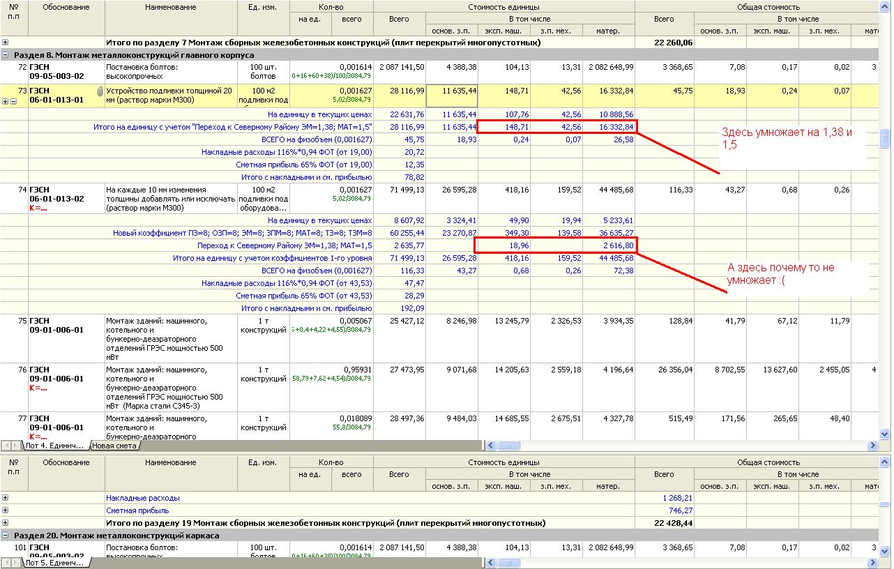 Блин.. сижу сравниваю сметы (у меня их две с почти одинаковыми расценками) и почему то не сходятся цены у одной и той же расценки.. оказывается поправочный коэффициент не правильно умножает, точнее не умножает, а производит непонятные какие то действия Жуть.. может кто посоветует что сделать в этой ситуации? Картинка прилагается