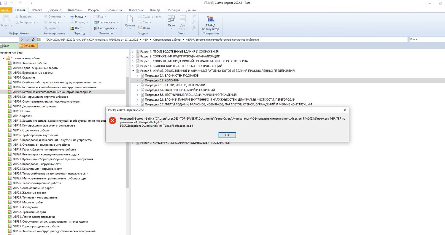 Здравствуйте. При попытке открыть сборник индексов к ФЕР, ТЕР в формате Гранд-сметы выскакивает ошибка (файл "Ошибка"). Раньше все работало нормально, но сегодня айтишник что-то мудрил с профилем пользователя. Файл отчета gsnfo прикладываю. Что нужно исправить, чтобы все открывалось? (кстати, некоторые сметы тоже не открываются, но там ошибка другая)