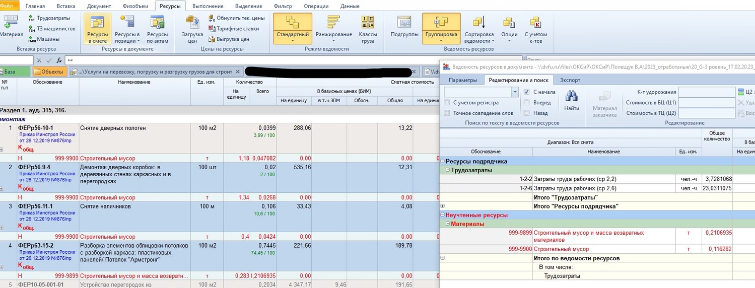 Помогите разобраться делаю смету на ремонт в РИМе как добавить погрузку и вывоз мусора? И еще в ресурсах не считается мусор если он учтен внутри расценки.