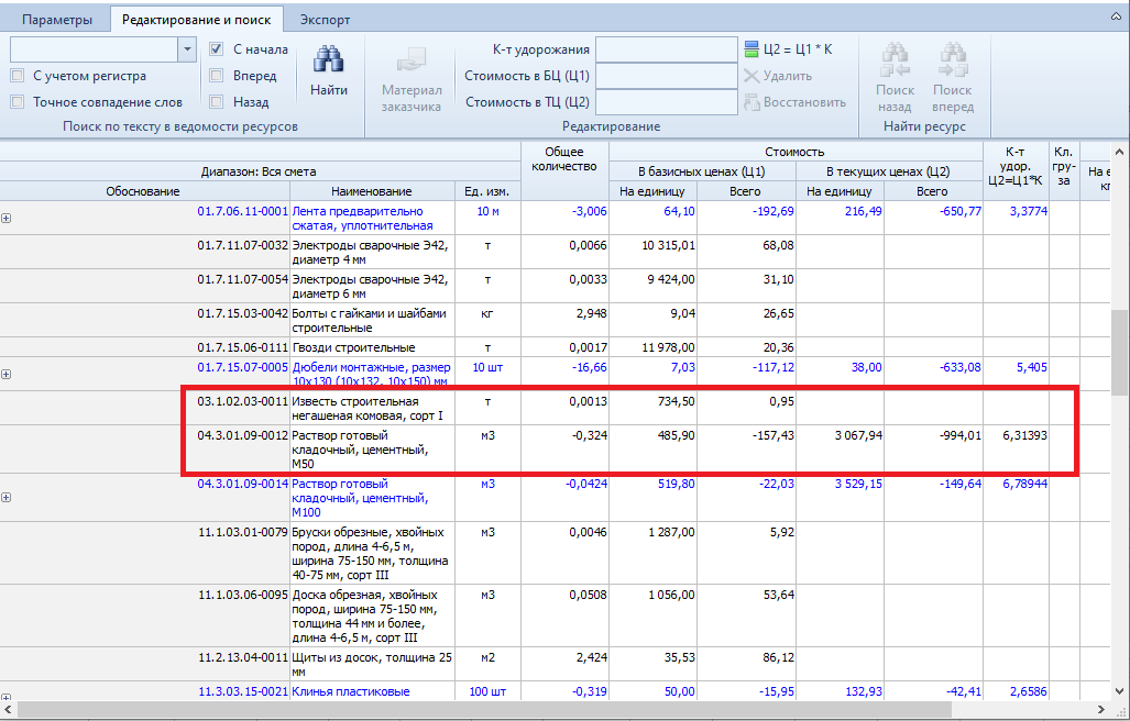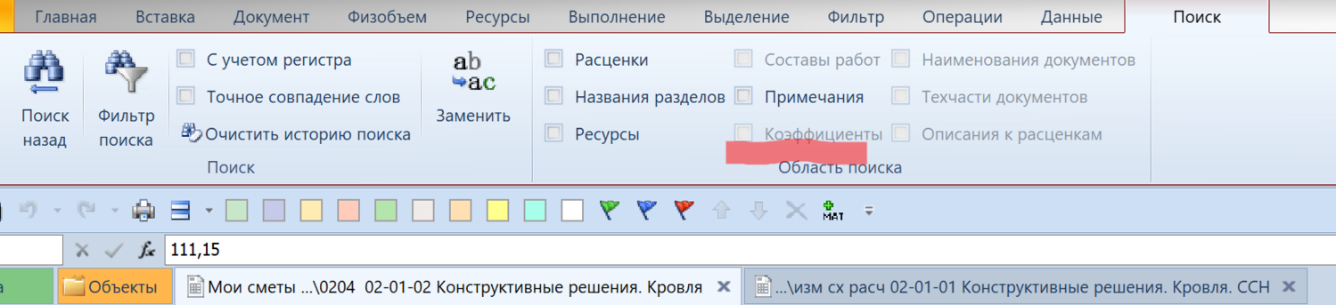 Вот вопросик. На какой-то предыдущей версии потерялся поиск в смете по коэффициентам.