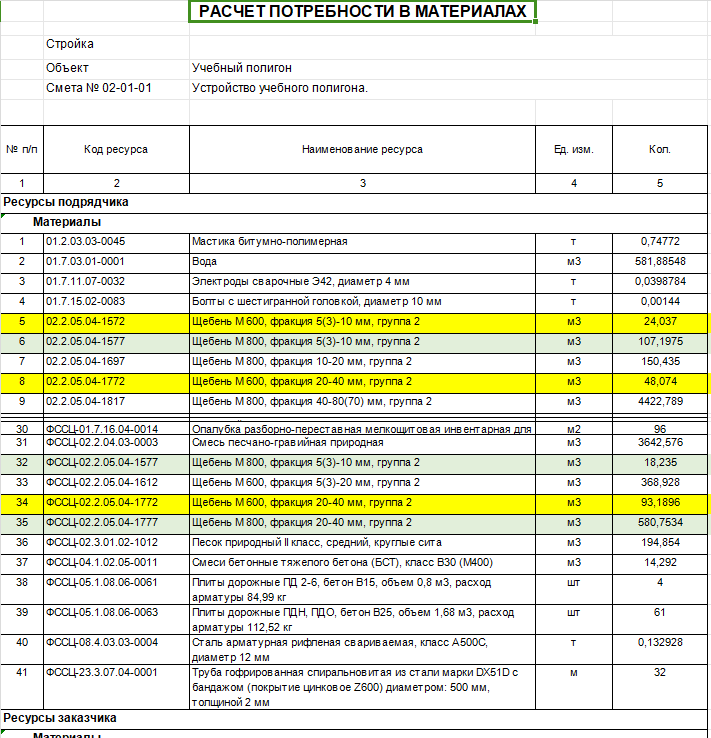 Почему в расчете потребности материалов не суммируются однородные материалы?