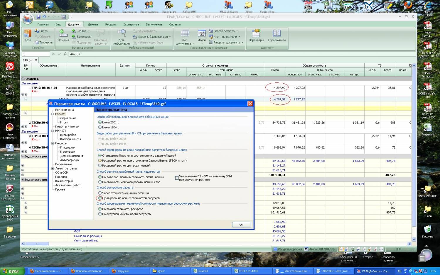у меня 4 версия гранд сметы. не вижу тут такого параметра "суммирование общих стоимостей ресурсов"