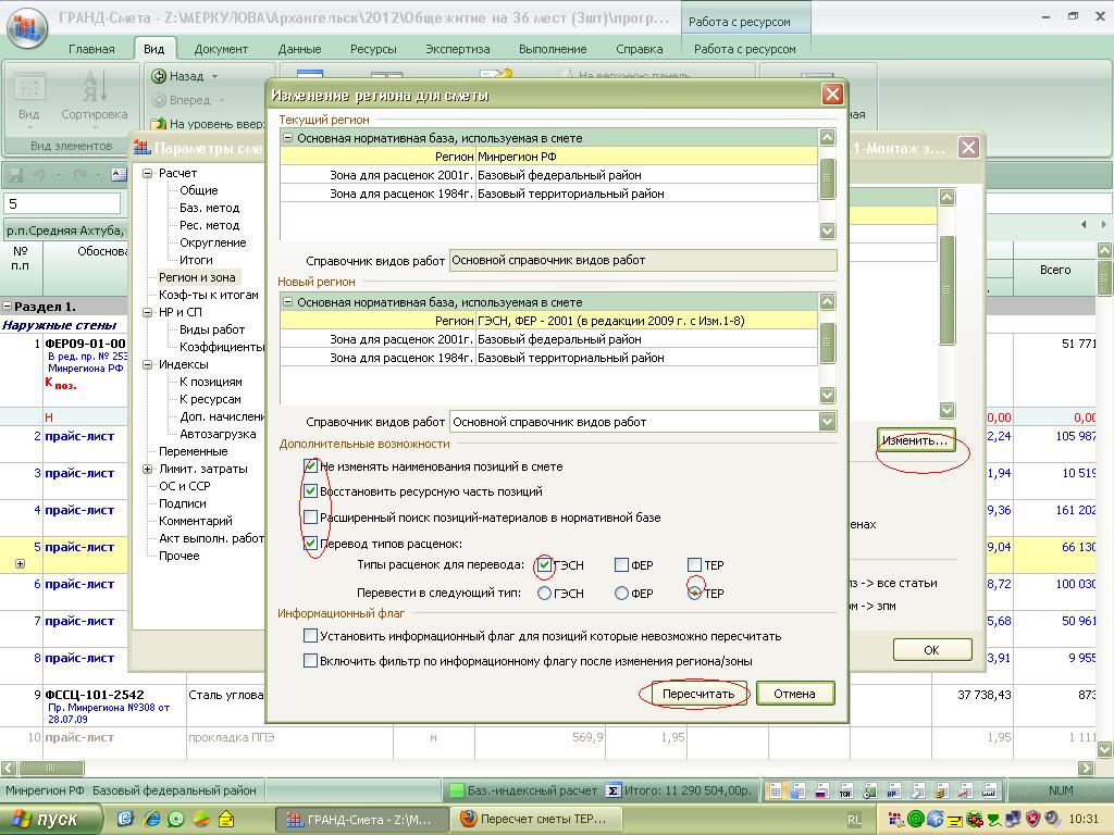 У меня трудности с ГЭСНами - смета пустая. Подскажите, пожалуйста, что делаю не так -Регион и зону поменяла, пересчитала -Расчет ресурсный -Текущие цены -Ценник загрузила