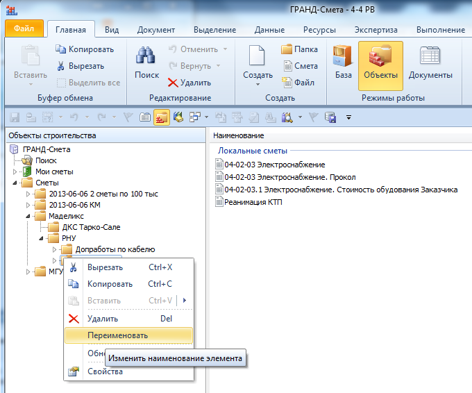 mtsn, а в окне "объекты" можно в выпадающей менюшке от ПКМ добавить пункт "открыть в проводнике"? Что бы сразу в папку попасть где смета находится. Что бы не через "сохранить как" сметы переносить.