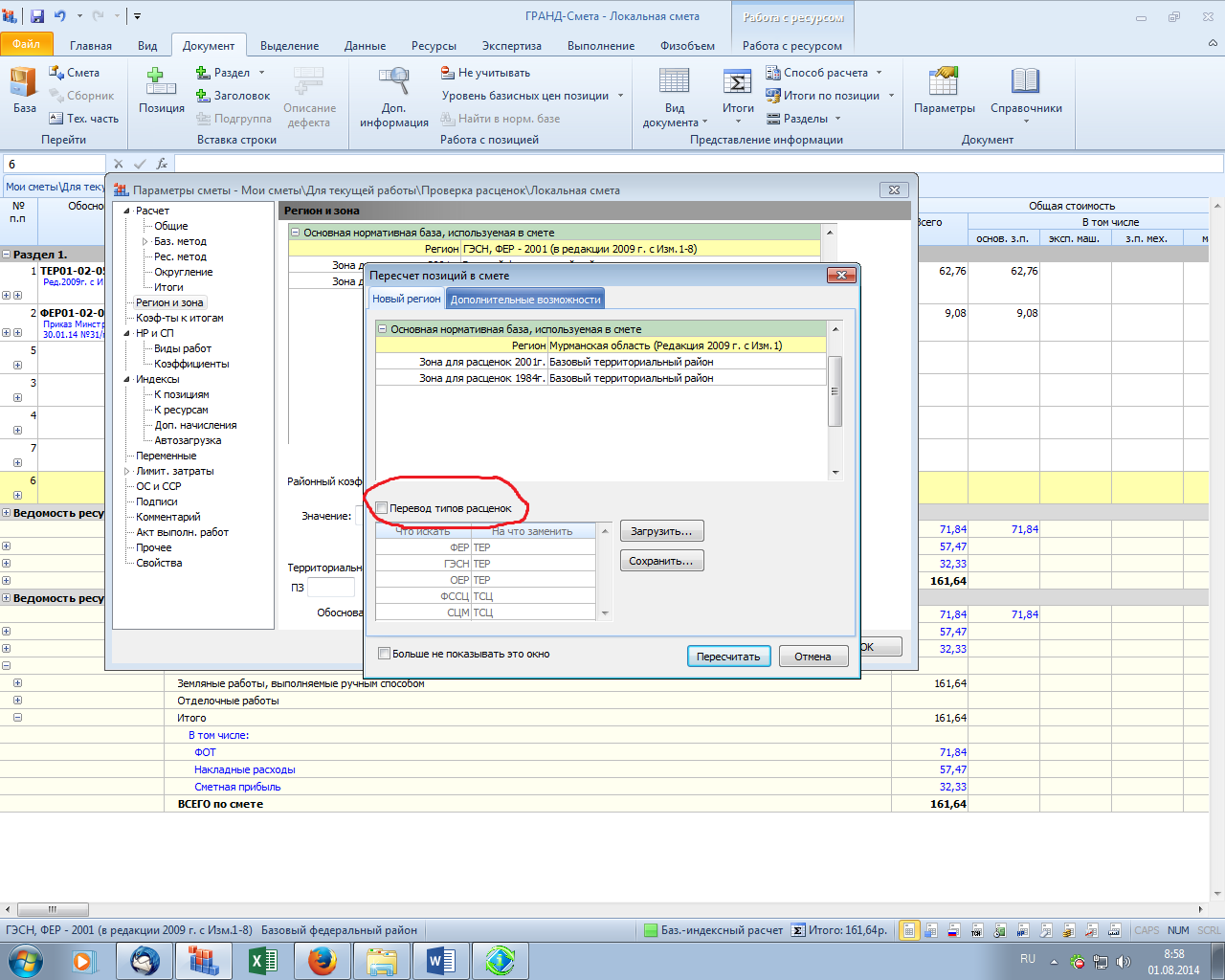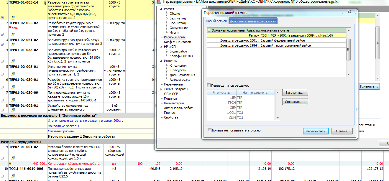 как в гранд-смете версия 6 пересчитать из тер в фер???