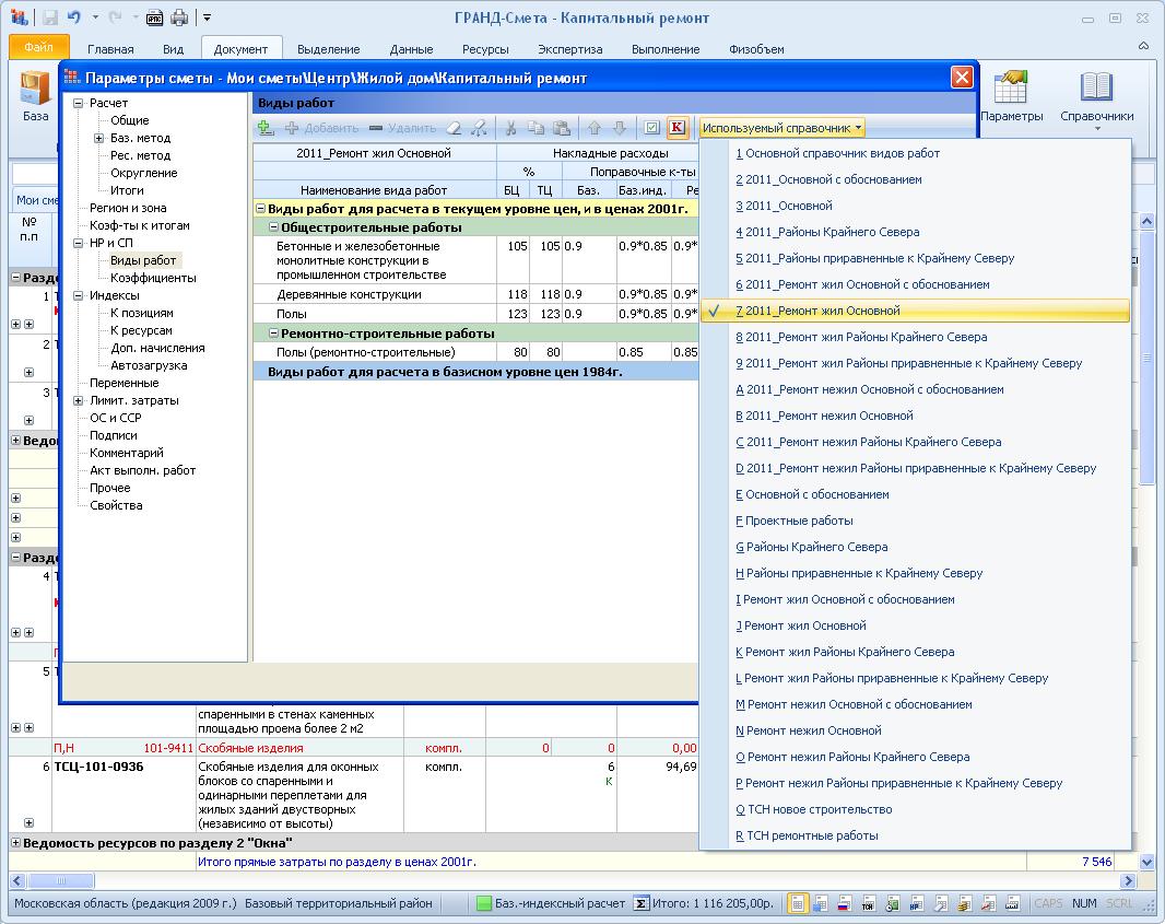 marina32, в окне с параметрами сметы на закладке «НР и СП – Виды работ» при помощи кнопки «Используемый справочник» выбирайте справочник видов работ, у которого в наименовании присутствует слово «Ремонт». Если «Ремонт жил», то для соответствующих видов работ сразу в справочнике будут заданы коэффициенты 0,9 к НР и 0,85 к СП. А если «Ремонт нежил», то только 0,85 к СП. Что касается коэффициентов 0,85 к НР и 0,8 к СП – они заданы в справочниках с отметкой «2011».