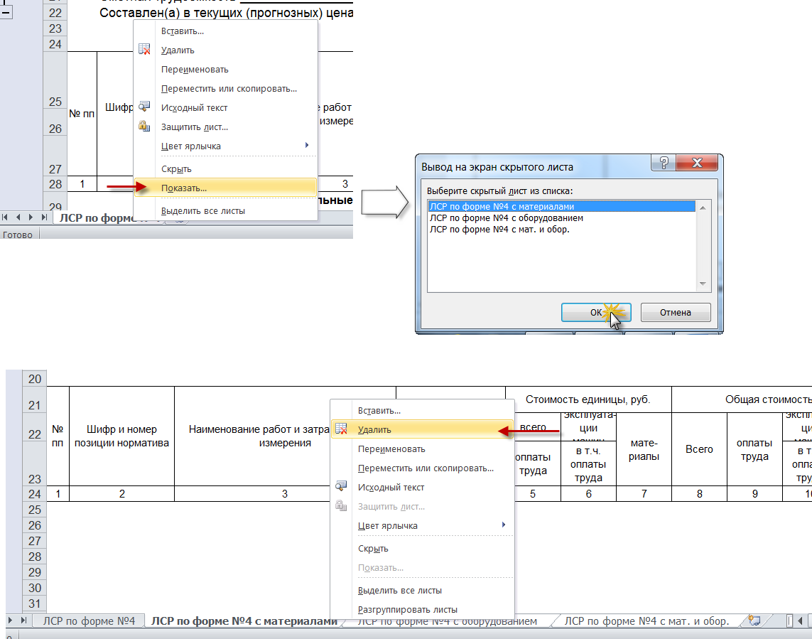 где объектные сметы когда они в файле вместе с ССР только на разных вкладках в эксель,