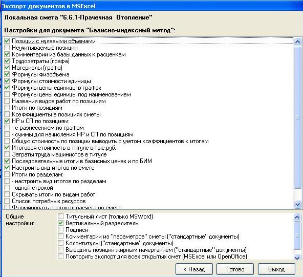 Джорджия, похоже у меня настройки все сбились, помогите пожалуйста, где нужно ставить галочки для локальной сметы, очень нужно. l