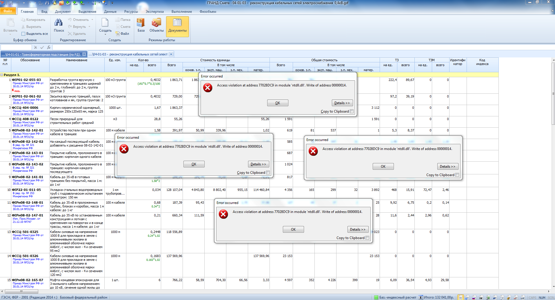 При включенной Гранд-Смете очень неудобно работать в Excel и Word. При копировании рисунков, нескольких ячеек и т.п. Гранд выдаёт ошибки. Видимо из-за постоянного отслеживания буфера обмена.