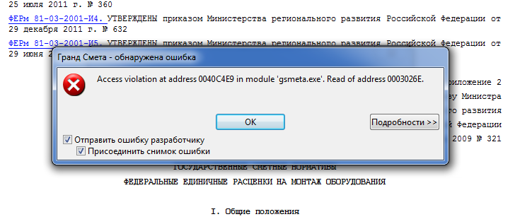 вышлите файл "C:\ProgramData\Grand\GrandSmeta 6\Client\exception_data.elf" на мыло [email protected] - посмотрю более конкретно.