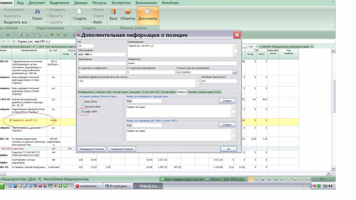 Добрый день. Подскажите, как изменить в гранде стоимость? Есть смета в печатном виде, ума не приложу как изменить стоимость. Расценка ТЕР16-06-005-01 в наименовании написана формула 6,25=1167,85-1х1161,60
