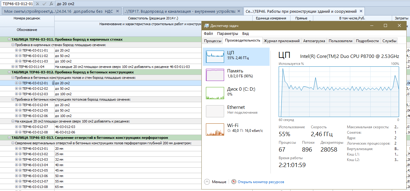 Добрый день всем. Заметил такую "особенность": версия программы флэш ГС 7.0.4, система Windows 10 (патч для вин 10 установлен). При открытие вкладки нормативной базы подскакивает загрузка процессора до 50-60% и держится пока активна эта вкладка со сборником. Даже если ничего не делать: просто смотришь сборник и не прикасаешься к копмьютеру - загрузка процессора не спадает (причем не важно сколько вкладок: 1 или 5). Стоит переключиться на вкладку любой открытой сметы-загрузка спадает до нормальных показателей 9-15%.