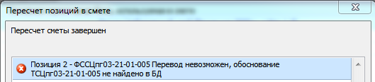 При пересчете из федеральной базы в территориальную не пересчитываются ФССЦпг в ТССЦпг (программа ищет обоснование ТСЦпг вместо ТССЦпг)