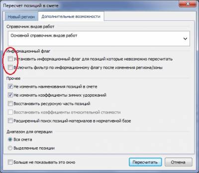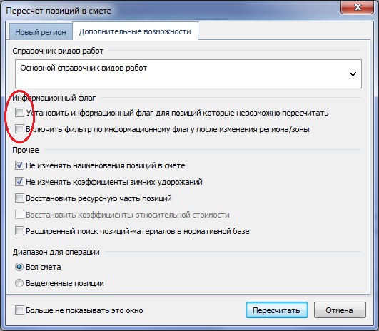 Всё есть, специальные опции для этого имеются: и информационный флаг можно установить, и сразу автоматически отфильтровать по нему после пересчёта сметы. И раньше это точно так же работало, только тогда все настройки в одном окне умещались, а теперь они по двум вкладкам распределены.