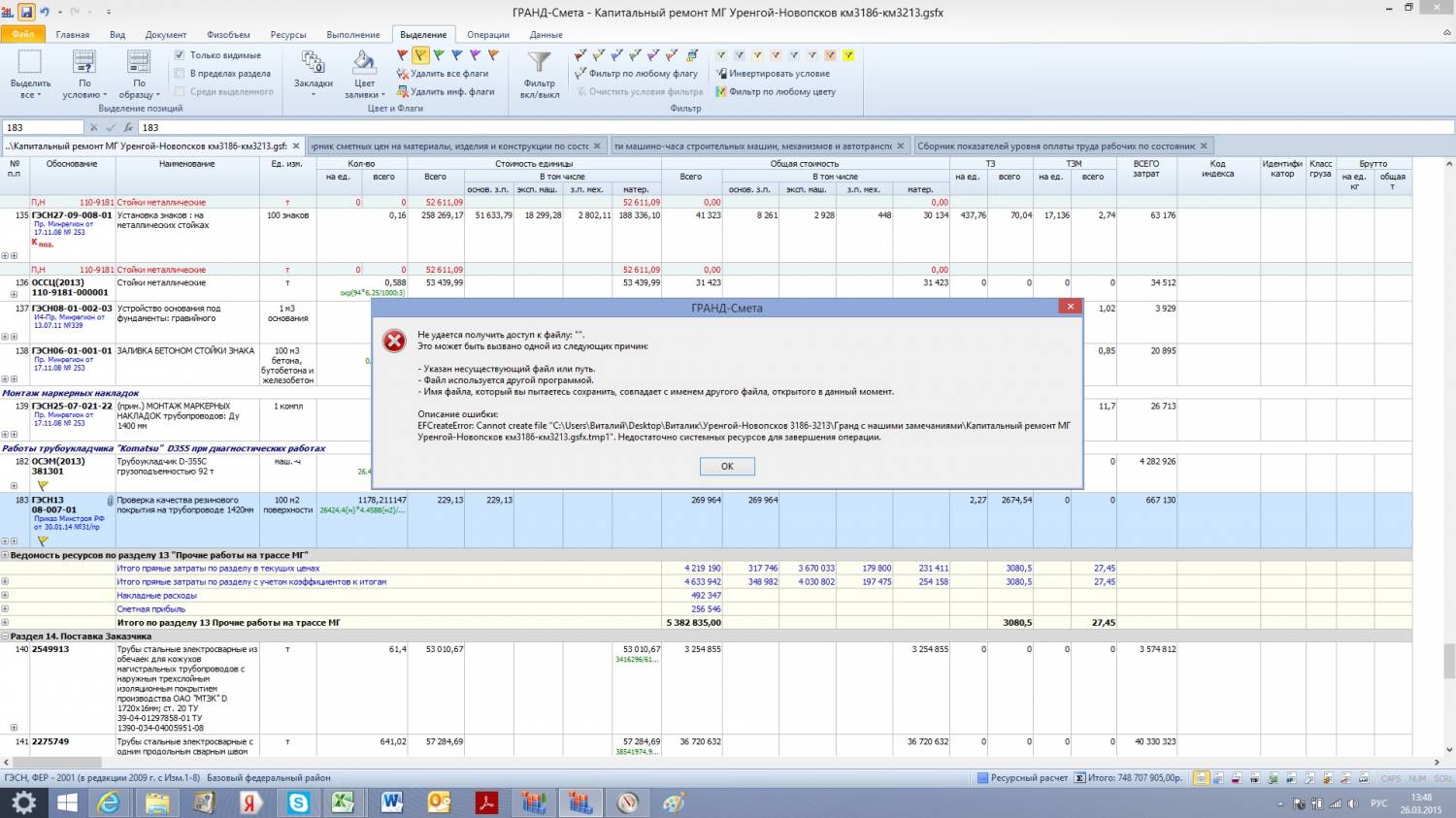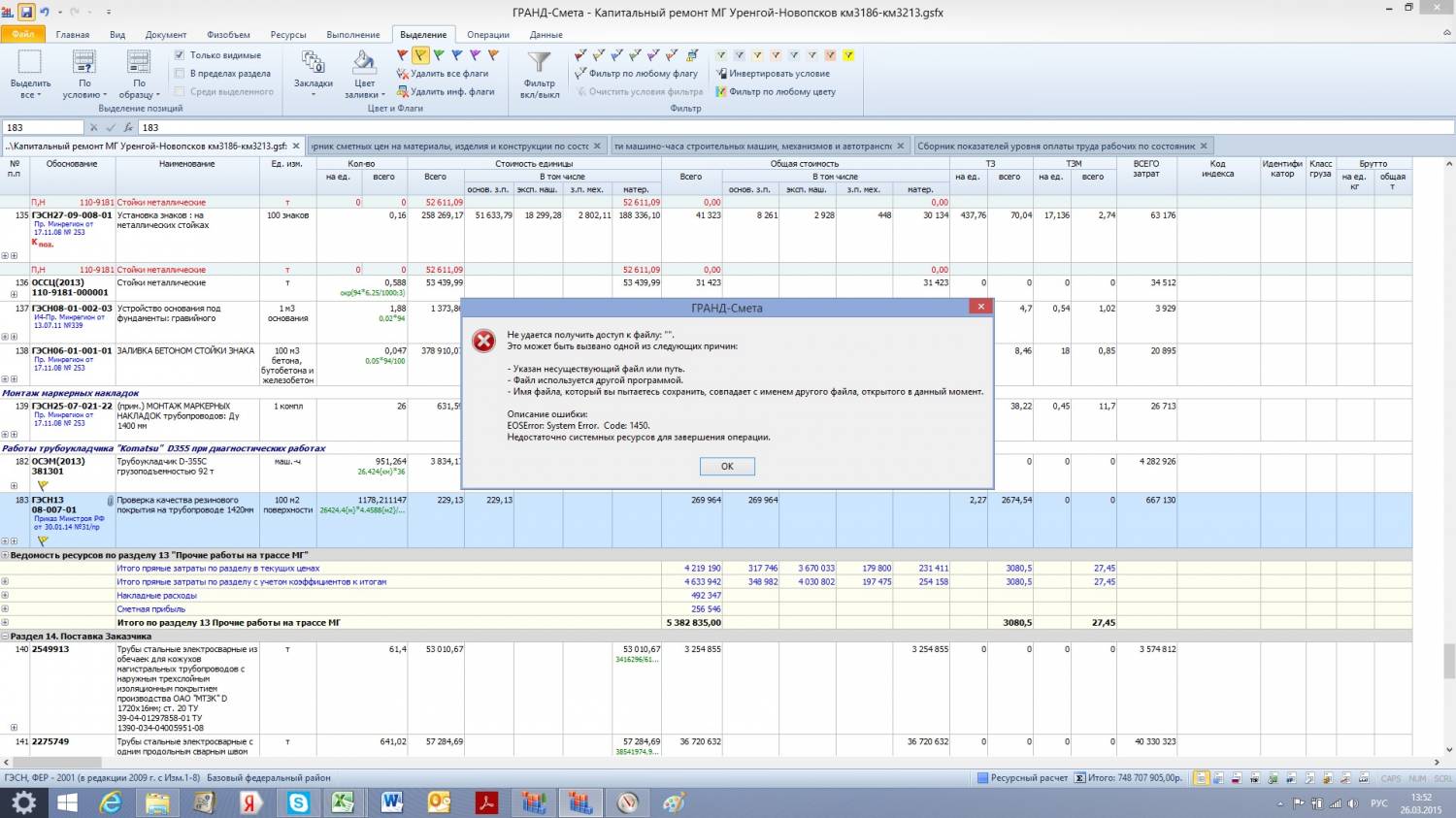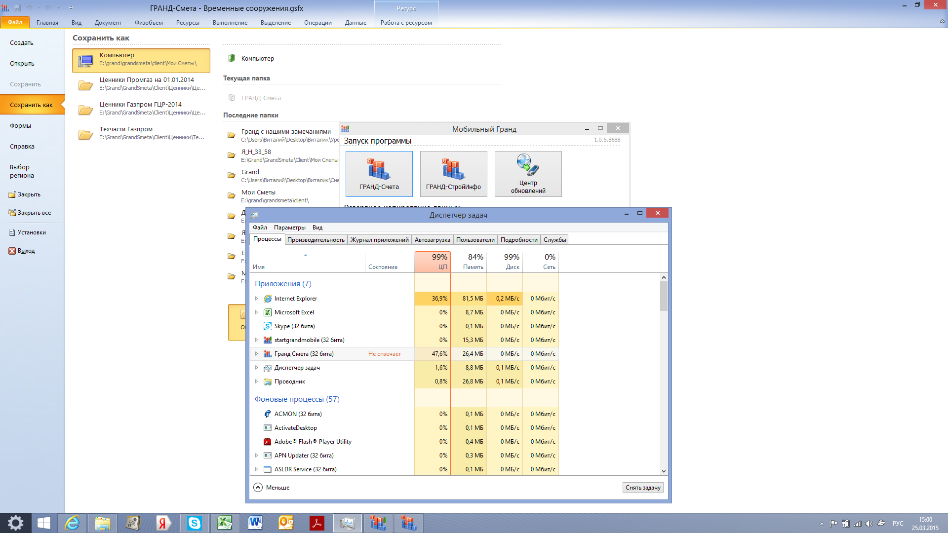 Как борюсь: Запуск от имени администратора, параллельно 1 эксель, 1 вёрд, интернет браузер вообще много ресурсов жрет выключаю и в самом гранде максимум 2 сметы и 3 базы.