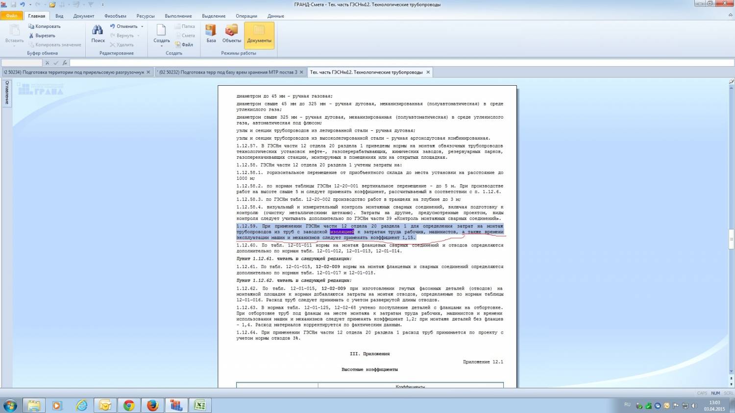 ГЭСНм12 Технологические трубопроводы ТЧ п.1.12.59 сказано, что нужно применять К=1,15 к ОЗП,ЭМ в т.ч. ЗПМ при прокладке труб с заводской изоляцией При добавлении коэффициента через Доп.инф. о позиции кнопкой ТЧ, коэффициент применился только к ОЗП. Чему верить?