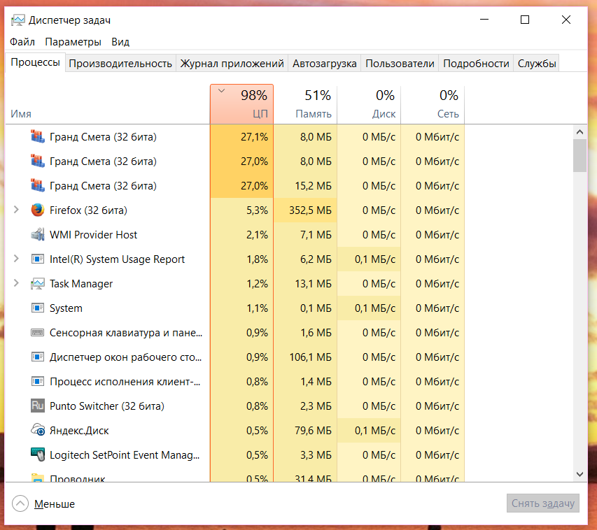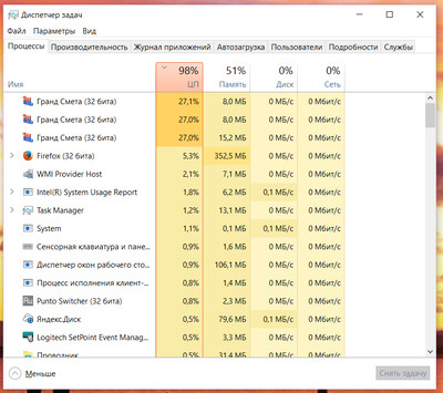 Гранд-Смета версии 7.0.2, Windows 8.1 64x. Гранд-Смета периодически наглухо зависает при выполнение совершенно разных действий в программе. В диспетчере задач отражается "не отвечает", при этом грузит одно ядро процессора на 100 %. Отключал антивирус, интернет, брандмауэр - проблема остается. С версией 7.0.0 такого не было.