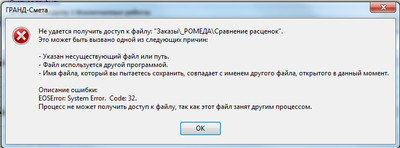 Сметы храню в нём, при сохранении выскакивает вот такое сообщение (при отключении синхронизации дропбокса этой ошибки не возникает).
