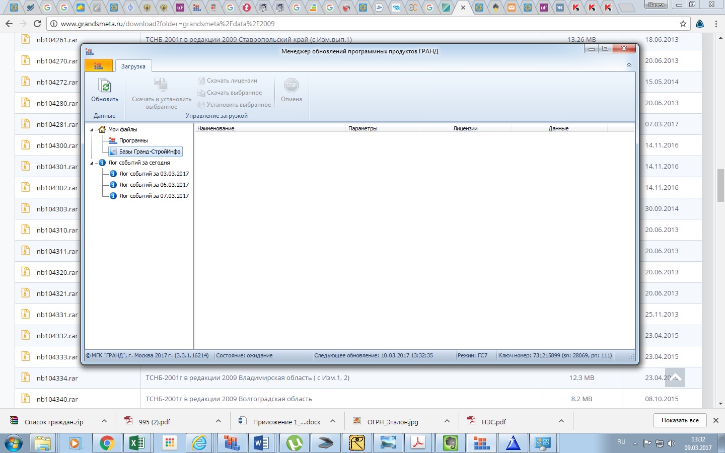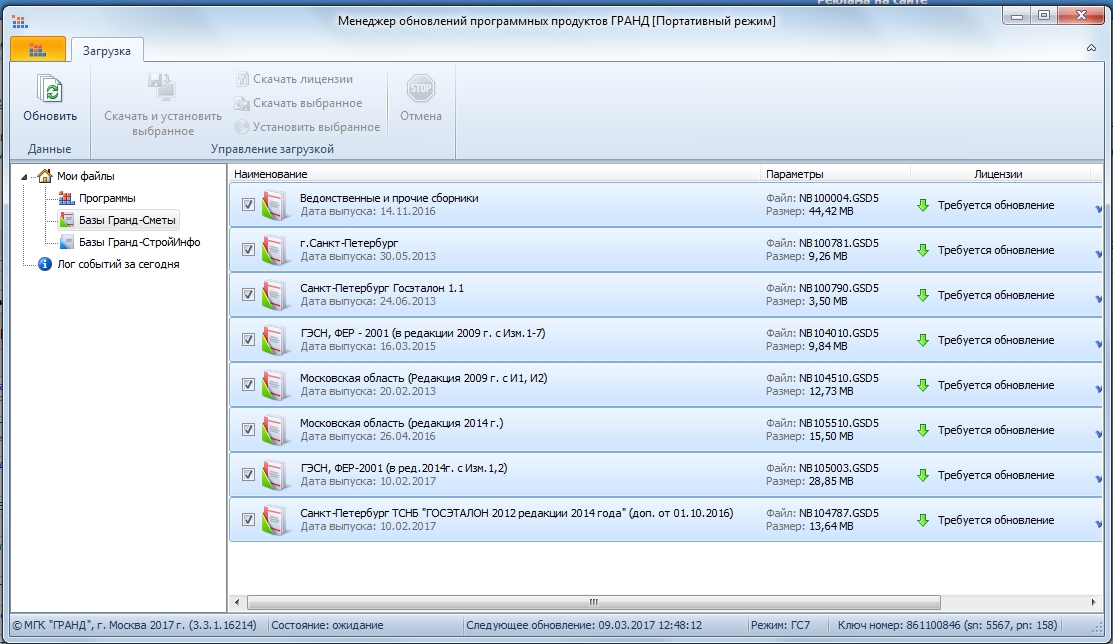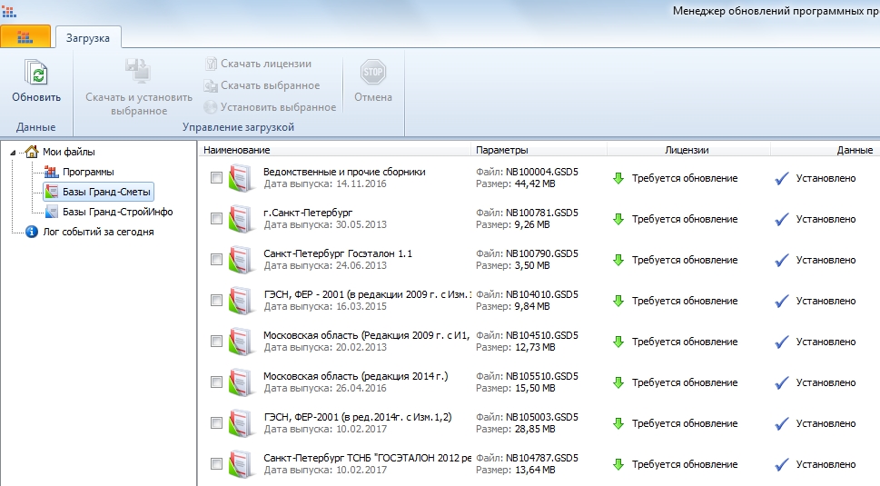Еще одна ошибка - в менеджере обновлений исчезли "Базы ГрандСметы"   Время 13.32. На скрине время зафиксировано
