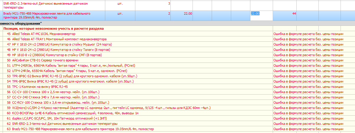 скопировал из екселя материалы. там была формула в расчете.... даже перебивая цену вручную ошибка сохраняется...