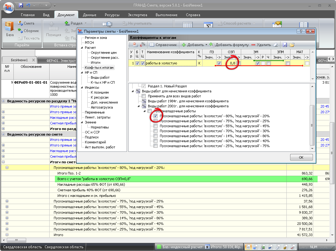В Смете на пусконаладку учитывается наладка в холостую и под нагрузкой. А мне нужно только под нагрузкой. Как это сделать?