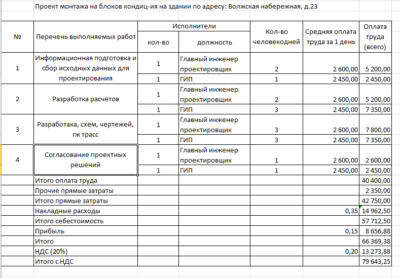 Собственно говоря, я первый раз делаю смету на проектные работы.