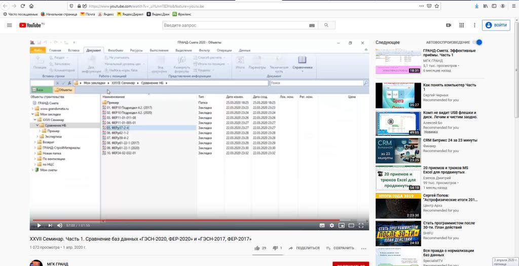 Принято решение добавить в состав учебного видеокурса серию роликов под общим названием - Эффективные приёмы работы в ПК «ГРАНД-Смета». На данный момент записаны три части, планируется продолжение. Все видеоролики опубликованы на канале группы компаний «ГРАНД» на YouTube. Ниже приводится подробное содержание указанных роликов с прямыми ссылками для просмотра видеоматериалов.