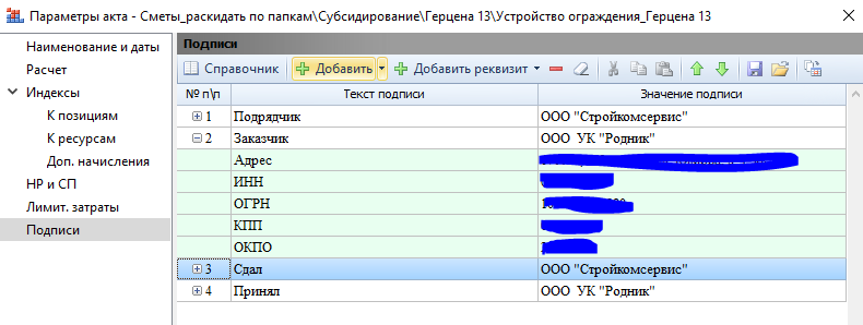 Я же говорю, что в программе всё настроено. При выводе в ексель в Заказчик и Подрядчик выводятся только организация, адрес и телефон. А мне нужно, чтобы были еще реквизиты: ИНН, ОГРН и прочее