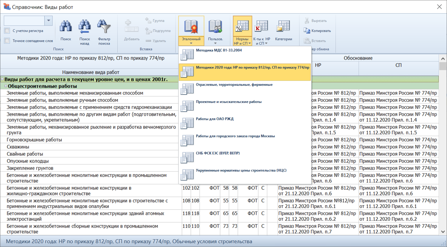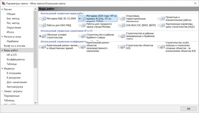 Как только, так сразу… В программе уже всё готово, не беспокойтесь. По зелёному свистку будет выложена версия программы с новым комплектом справочников и обновлённые базы данных с привязкой расценок к новым видам работ: И тогда в локальных сметах останется только обновить расценки и выбрать новую настройку в параметрах: